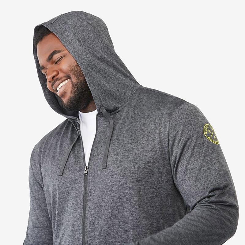 Meet the men’s Lavar Eco Knit Full Zip Hoody, a buttery soft hoody with classic, casual styling you can wear to work, the grocery store or anywhere in between, making it the ultimate athleisure piece. It’s made from a super comfy, recycled polyblend jersey knit fabric with a peached finish, plus a zipper made from recycled content and a recycled pinch label, making it a cozy lightweight layer you can feel good about wearing all year round. Its fabric is breathable and moisture-wicking. (It’s even anti-pill, so it looks new wear after wear.) It features front kanga pockets, plus an interior media pocket for your phone. It’s made from the same eco-friendly fabric as our Lavar Eco Knit Hoody. And through a partnership with 1% For The Planet, one percent of sales of all Eco products are donated to environmental nonprofits.