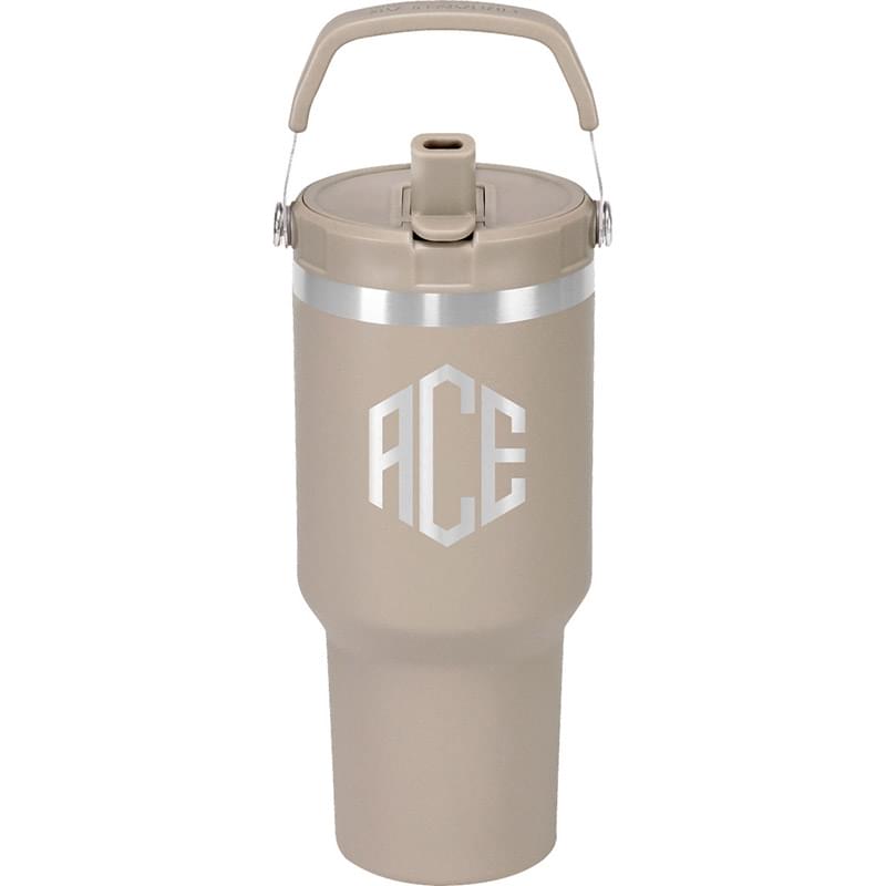 • Features a screw-on lid with metal handle and a built-in flip straw