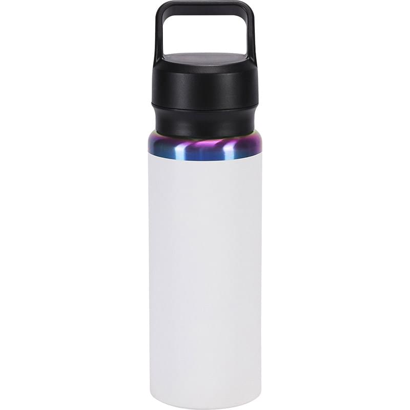 • Durable Stainless Steel water bottle with rainbow underlay and a dual top PP & Tritan carry handle