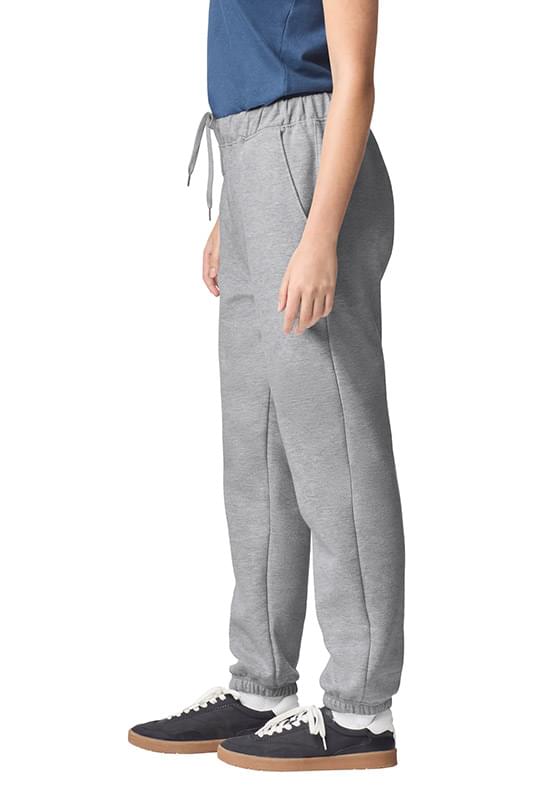 8.4-ounce, 80/20 ring spun cotton/polyester 75/25 ring spun cotton/polyester (Ring Spun Sport Grey) 100% ring spun cotton face Covered elastic waistband with interior white drawcords Slanted side pockets Differential front and back rise for better fit Tapered legs Elasticized cuffs Classic fit Recycled, high-performing black tear-away label