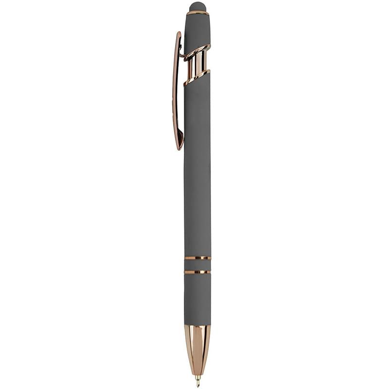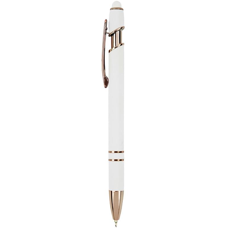 An Elegant Ultima Stylus Pen With Rose Gold Trim Adds Style to Your Brand. Its Sleek Design and Soft Touch Finish Will Leave a Lasting Impression on Your Customers.