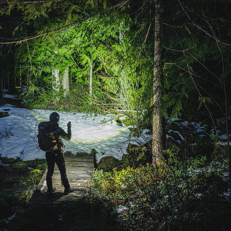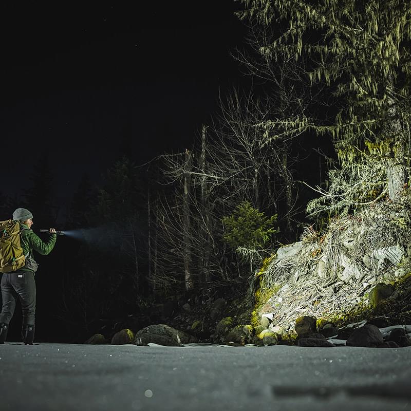 Overcome darkness with overwhelming light shining up to 8,000 lumens. Select from five modes—medium, high, low, Turbo, and MoonGlow™. The real time display screen in front of the power switch displays what mode the flashlight is operating in and how much run time remains in the battery. Also functions as a powerbank to charge other devices. Rated IP54 dust-resistant and water-resistant. Laser engrave the head of the light. Boxed.
