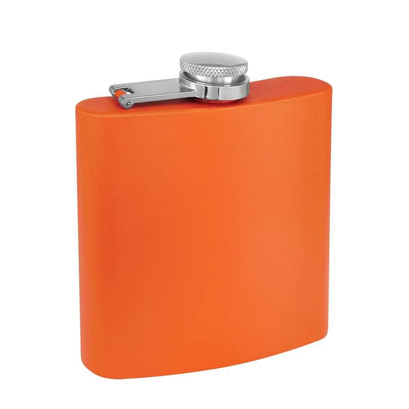 These 6 oz. stainless steel flasks are powder coated for an exceptional matte and textured look and feel. Personalize it with an engraving of your logo and make this your employee’s go-to. Each flask comes with an attached leak resistant cap.
