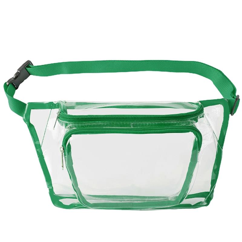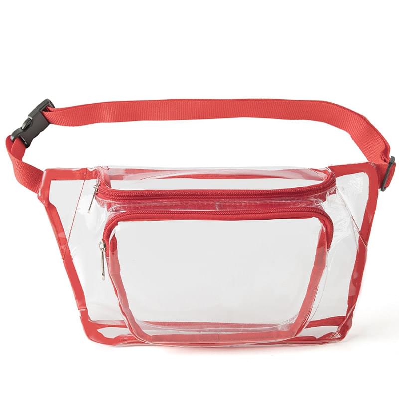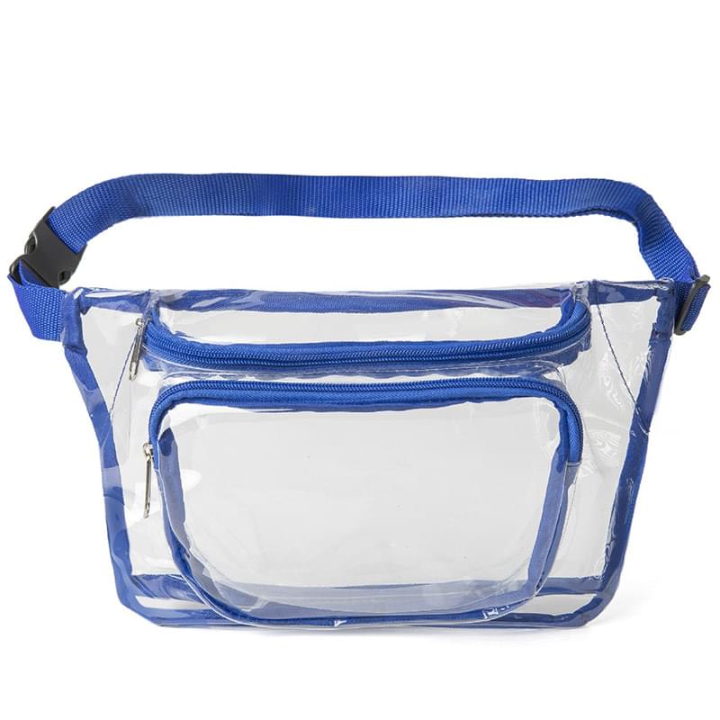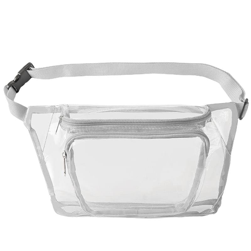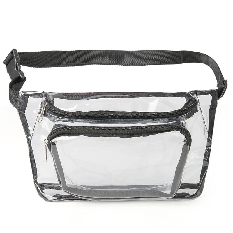 Promote your brand with our Clear Fanny Pack w/ Two Zipper Pockets. Measuring at 13.4" X 6" X 3.75", this Clear PVC Waist Pack has a large imprint area of 5"W x 3"H Ideal for Maximum Brand Exposure. Constructed from sturdy Transparent 210D PVC material, this adjustable fanny pack waist bags straps that are comfortable and stylish. These multipurpose waterproof Fanny Packs are ideal for stadiums, travelling and outdoor activities and it also features 2 zipped compartments.