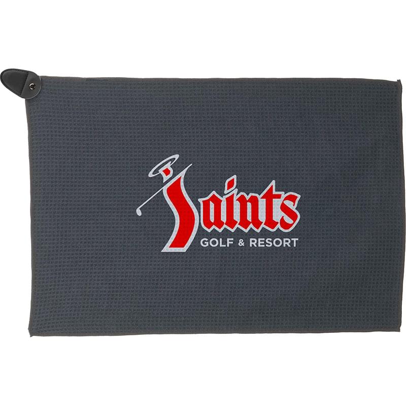 The Magnetic 300g Waffle Stick-It Golf Towel is a course essential designed for convenience and performance. Made from 100% recycled polyester, this eco-conscious towel features a strong integrated magnet that easily attaches to golf carts, clubs, or any metal surface—keeping it within reach when you need it most. The waffle-textured fabric helps scrub away dirt and debris from clubs and balls, making it a reliable companion from the first tee to the final green. Plus, through a partnership with 1% For The Planet, a portion of each sale supports environmental nonprofits.