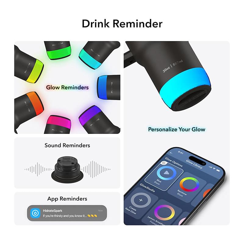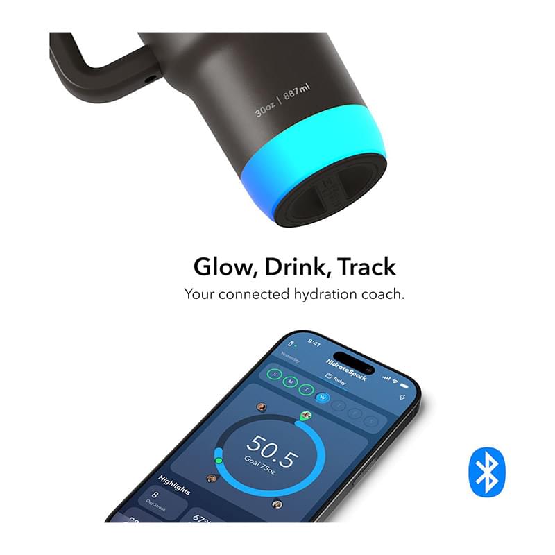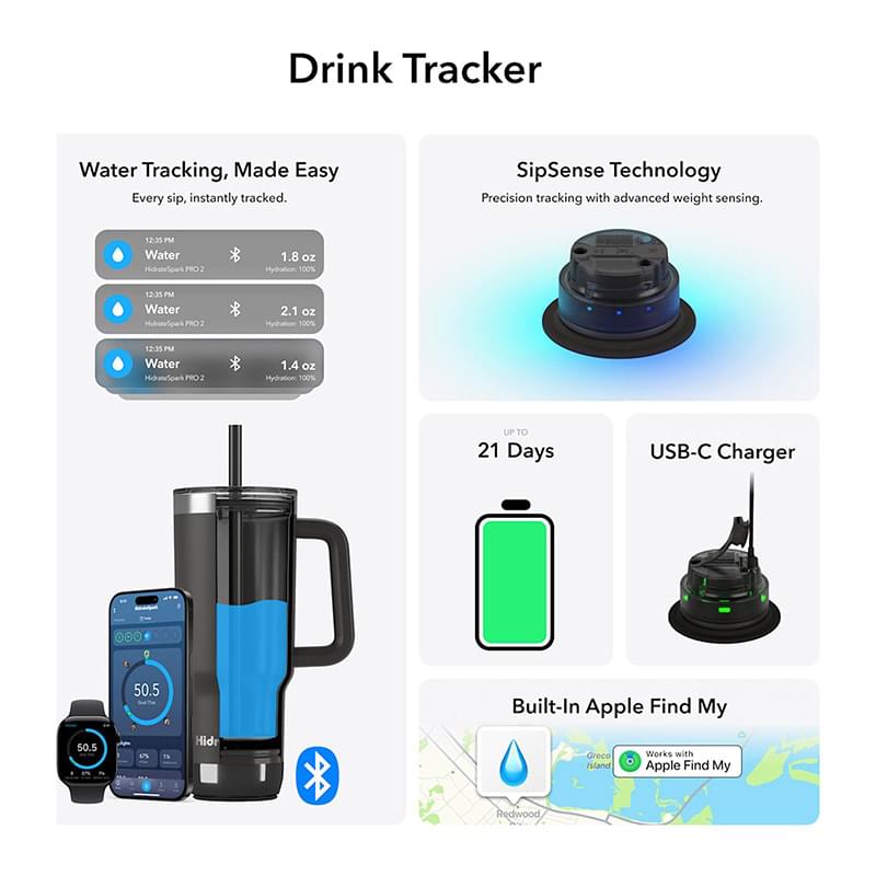 Stay hydrated like never before with the 30 oz HidrateSpark PRO 2, the world’s smartest tumbler made from premium recycled stainless steel. Double-wall vacuum insulation keeps your drink cold for up to 24 hours, or hot for 4 hours, while the PRO 2 sensor with SipSense technology tracks every sip and reminds you when it’s time to drink with a customizable 360-degree glow and optional sound alerts.