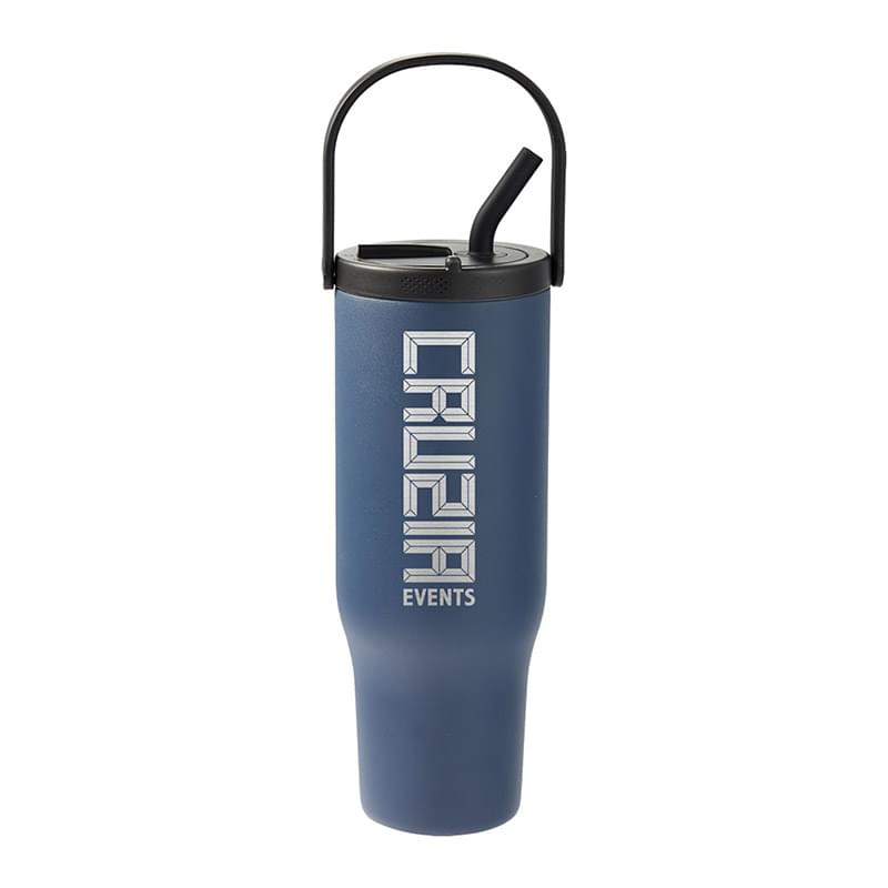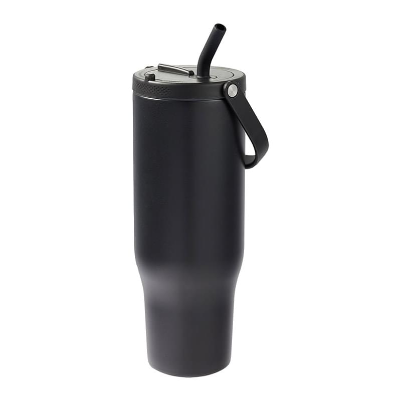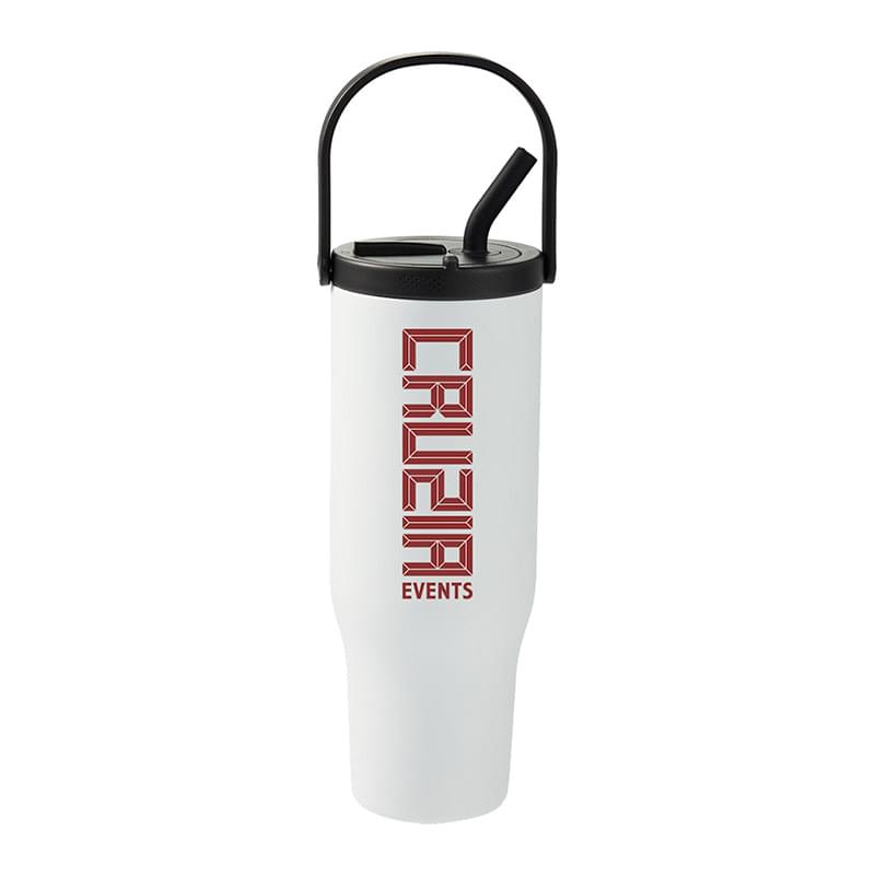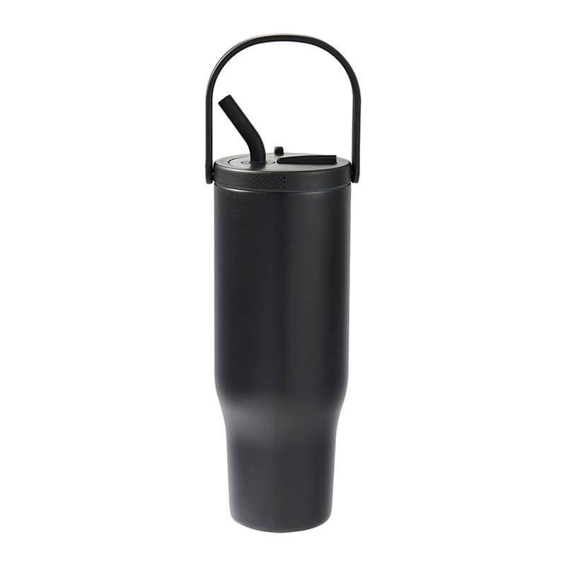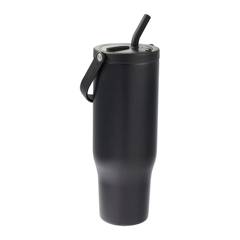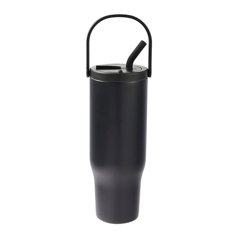 The new Trinity Tumbler 30oz is here to hydrate more and refill less. A very comfortable, extremely durable handle takes it to the next level, and the large size can go anywhere, even fitting most cupholders. Durable, double-wall stainless steel vacuum construction with copper insulation allows your beverage to stay cold for up to 48 hours. The construction also prevents condensation on the outside of the tumbler, and the flexible straw is easy to sip any which way. Constructed from 91% post-consumer recycled 18/8 stainless steel and additional recycled plastic components, this bottle delivers style and performance with an eco-conscious focus. The screw-on Straw Lid is leak-proof. The trendy powder coat is durable, sweat-free. Cold beverage only. BPA-Free Hand wash only. 30oz.
