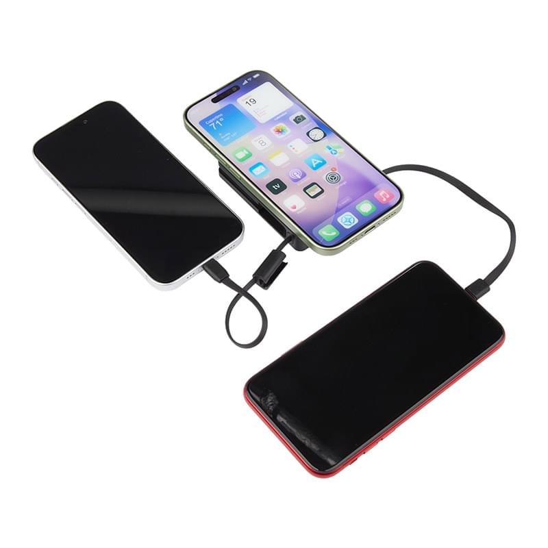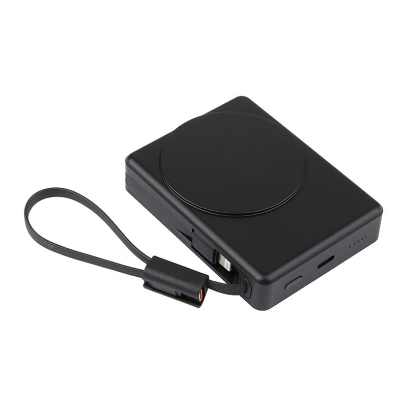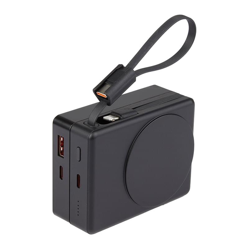 Introducing the Ultimate MagClick™ Wireless Charging Solution. This power bank comes with a 5,000 mAh (19.25Wh) lithium-ion battery, allowing you to charge your phone in multiple ways: via the integrated cables, the USB-C port, the 15W MagClick™ wireless charging pad, or the detachable AC 20W USB adapter. You can also use the AC USB adapter to recharge the power bank itself. When you're heading out for a trip, this product is all you need to take along! The AC USB adapter features a 20W USB-C output and an 18W USB-A output. Its foldable prongs make it easy to transport. The power bank includes a 20W Type-C input/output port, an integrated Type-C cable, and an iOS cable compatible with all major phones. Please note: Power banks are only permitted in carry-on luggage and are subject to TSA regulations. Be sure to charge the device before its first use.
