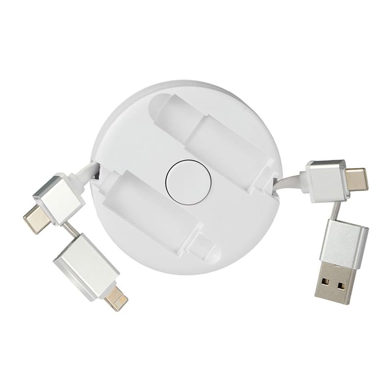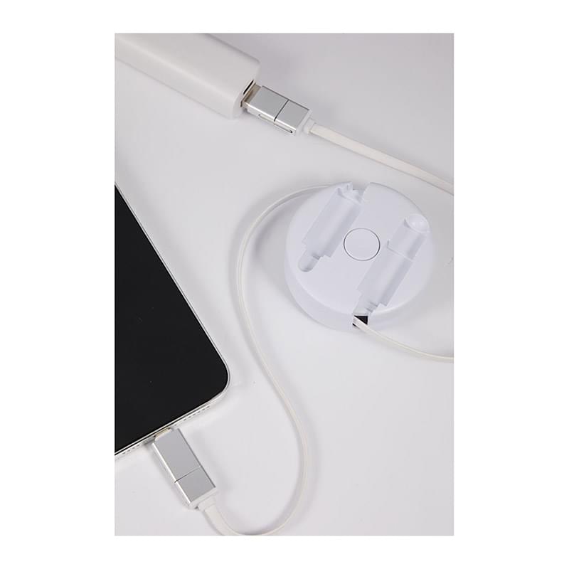 The Spinner 5-in-1 40W PD Charging Cable can be extended to 36'' long and includes a USB Type-A adapter and a USB Type-C input tip on one side. The other side includes a two-in-one dual compatible adapter for both Apple iOS and Android devices (up to 9V/2A, 18W charging speed), a USB Type-C output tip. Compatible for iPhone 15 Series, Android phones with Type-C port, even iPads/tablets with Type-C port. By using Type-C to Type-C type with appropriate AC adapter, it can reach up to 20V/2A, 40W. It also can be spun freely and smoothly to help with relieving stress when cable is stored properly. It features casing crafted from 100% recycled materials. It is recommended to use an AC adapter, power bank or car charger to charge devices, instead of using outputs from laptop or computer as power source.