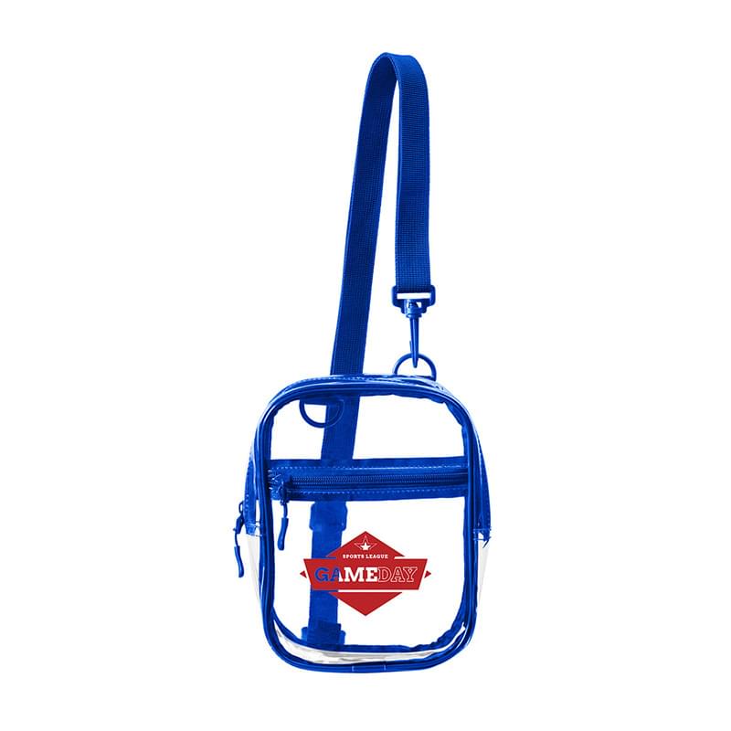 • Clear PVC adjustable sling bag with Polyester webbing strap