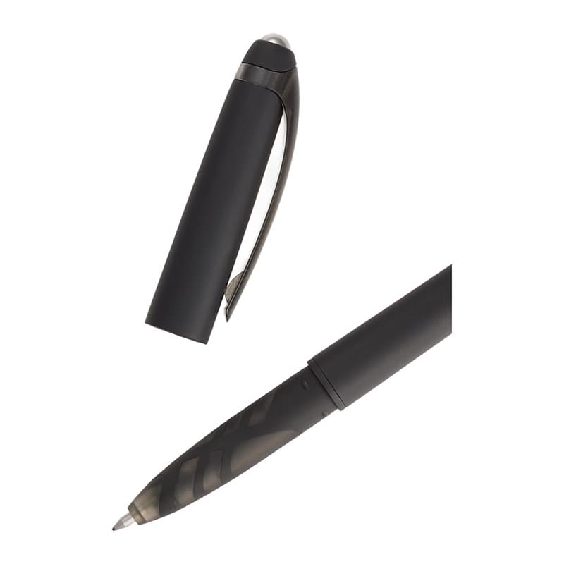 The Rovio Recycled Fidget Stylus Pen blends focus with function. Its recycled ABS barrel houses a 0.7 mm tip which delivers 300m of smooth black gel ink and a tactile cap-off rolling fidget ball to relieve stress during meetings or study sessions. A built-in stylus keeps your device navigation seamless — perfect for desk work and mobile note-taking. By choosing this pen, you're making a positive impact on the environment, as one percent of sales are donated to environmental nonprofits through a partnership with 1% For The Planet.