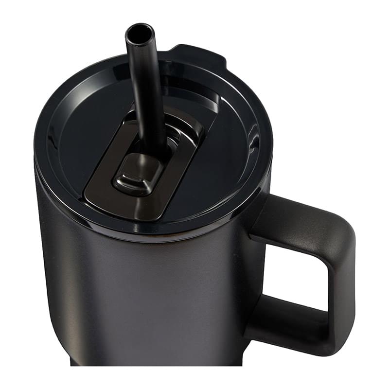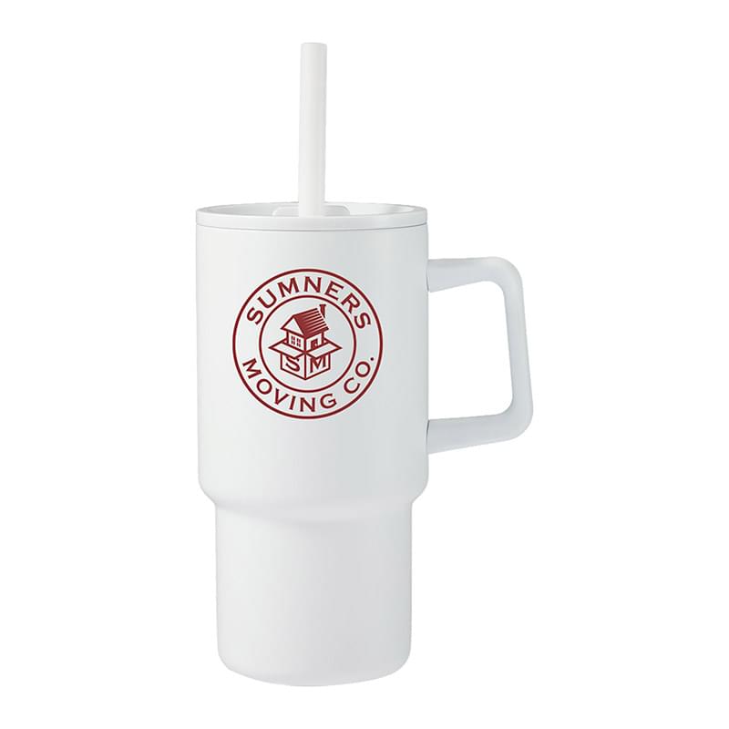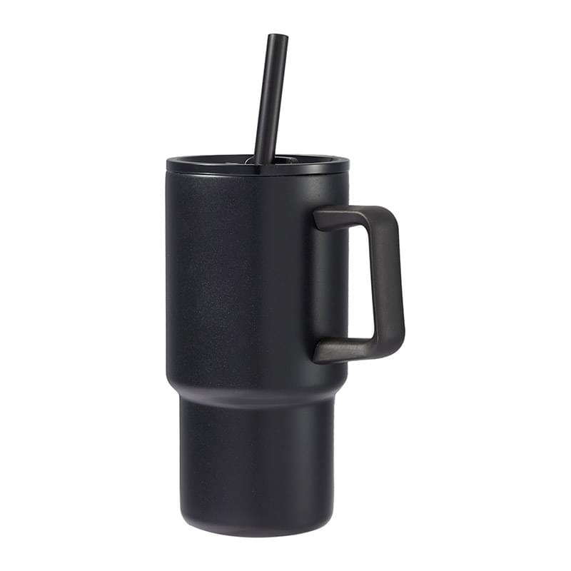 The Bullet Summit 18oz Mug with straw features double wall vacuum insulated construction designed to keep beverages hot for up to 5 hours or cold for up to 15 hours. It is crafted from 91% recycled stainless steel liner and the standard-stainless steel outer, plus a condensation-resistant exterior. It is designed to give you ultimate hydration versatility. Choose your method of drinking with ease, slide open the large closure for swig and slide open the small closure to insert the reusable straw for Sip. The Summit mug includes a spill-proof press-on lid, together with an individual straw that is an eco-friendly, environmentally responsible, and sustainable alternative to disposable ones. Hand wash only. 18oz.