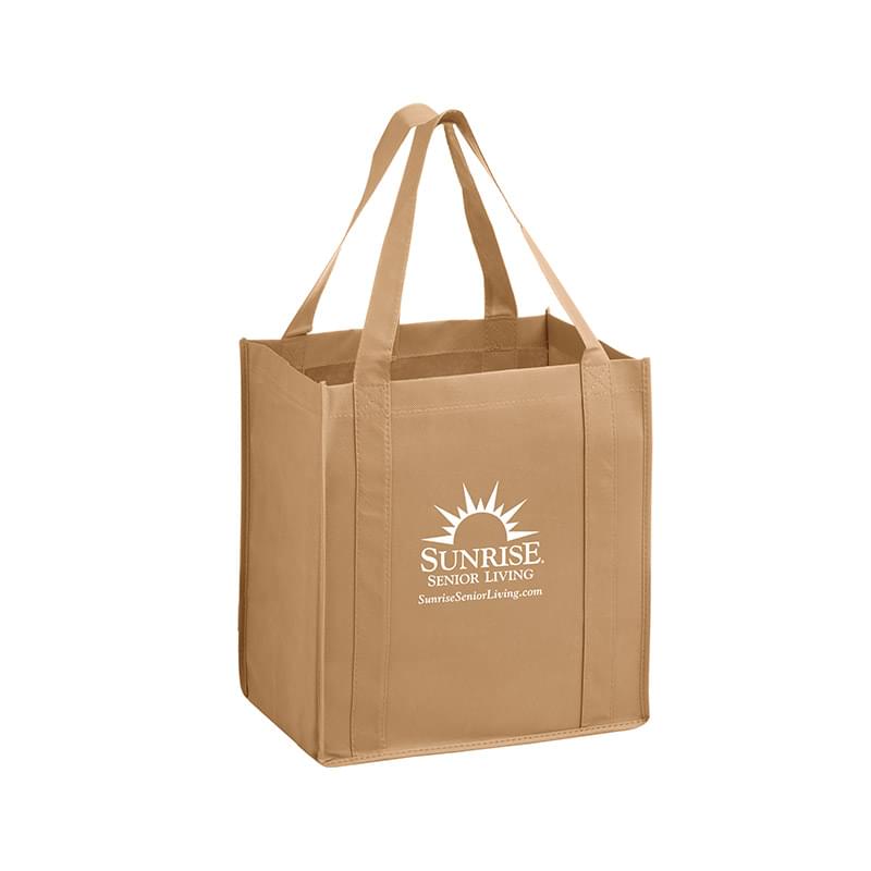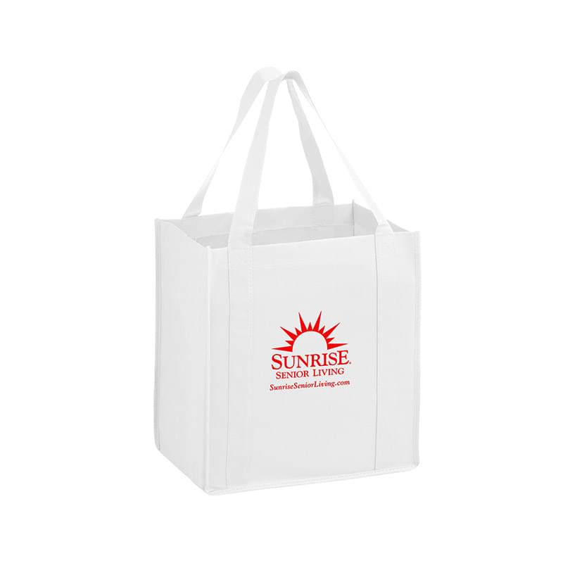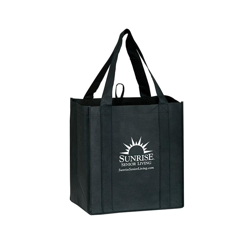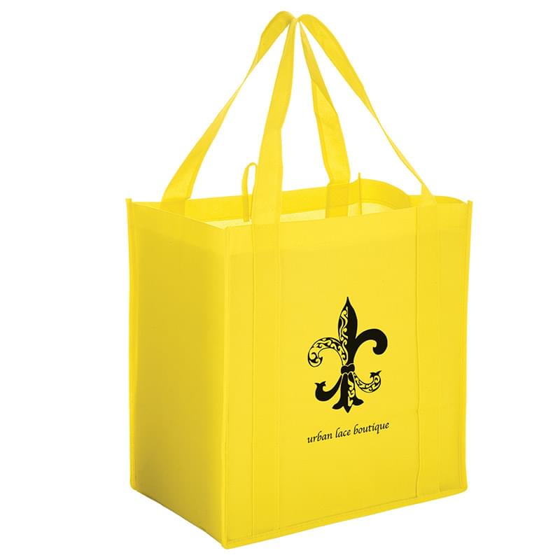 Bag new business with our Y2K grocery bag! Measuring 12" x 13", this heavy duty bag features 8" gussets and is made from durable, 100 GSM non-woven polypropylene. Made with a hemmed opening, a convenient hanging loop, and 22" reinforced sewn handles that extend down the height of the bag. Includes a poly board insert for superior strength. Customize with up to 4 spot colors on 1 side or 2 sides.