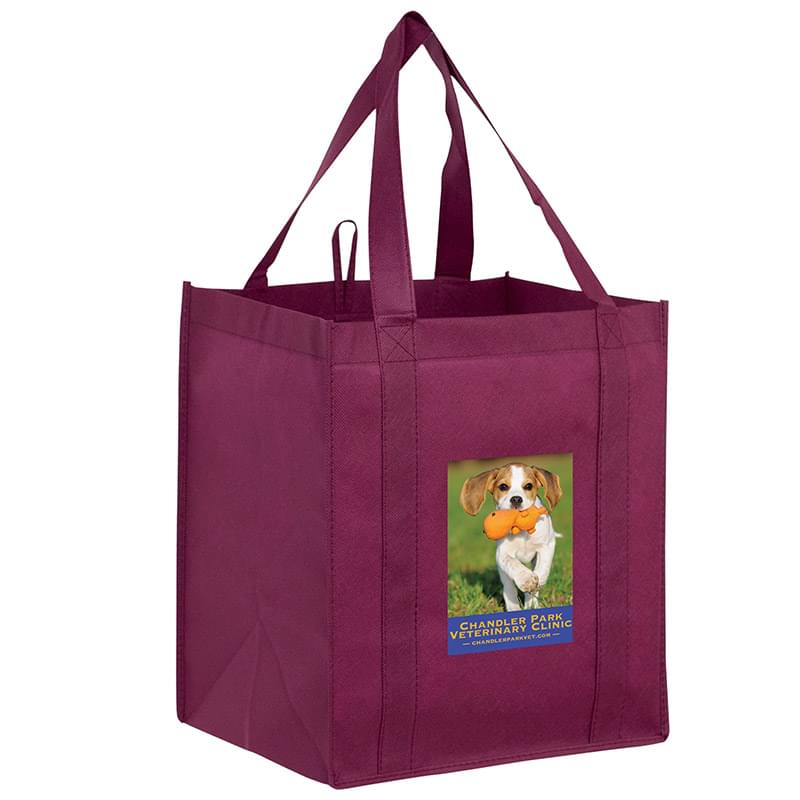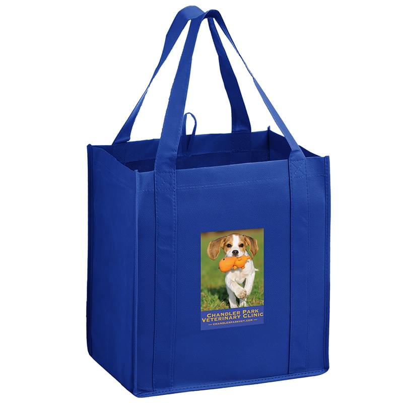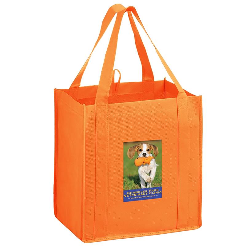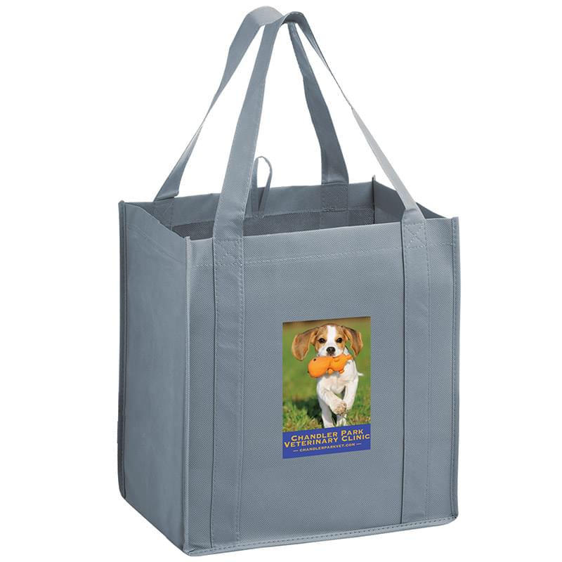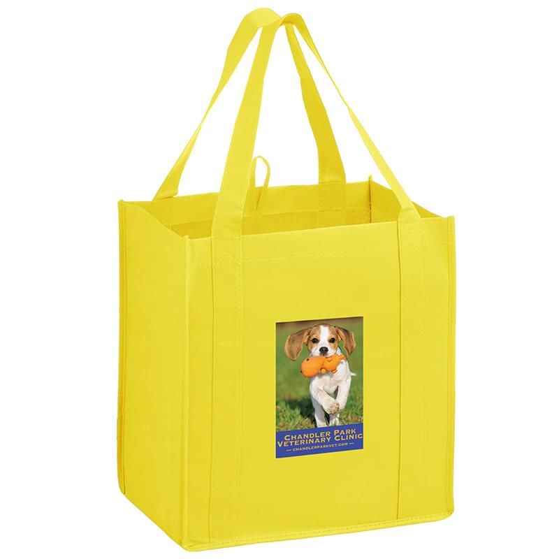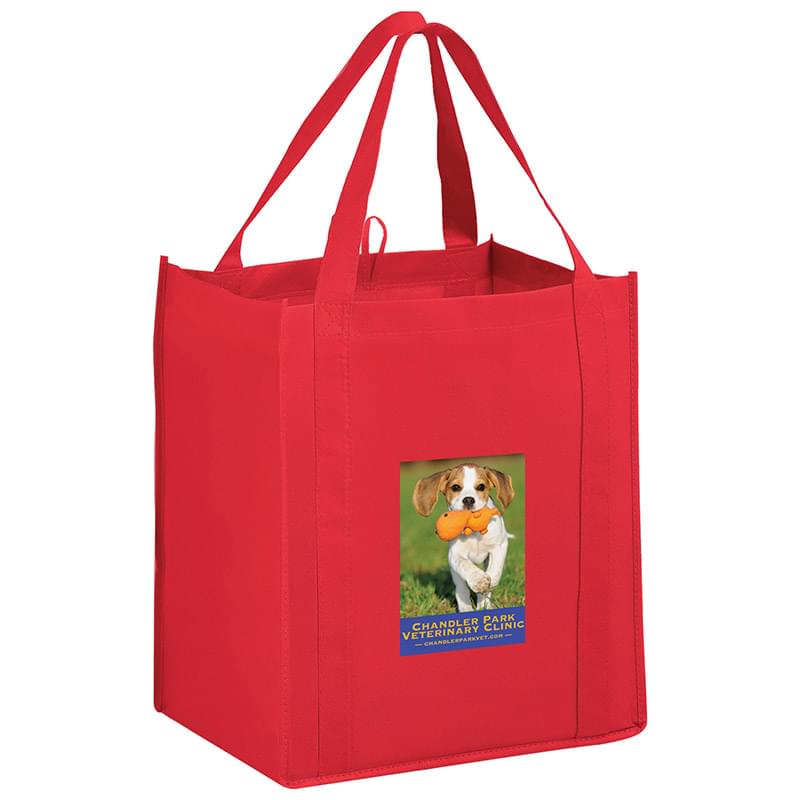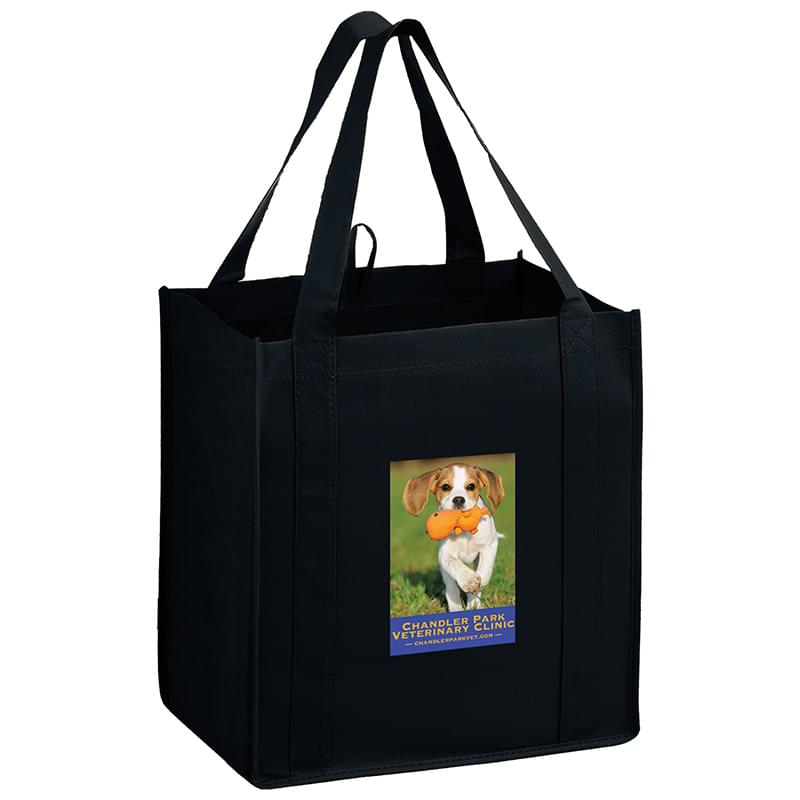 This 13" x 15" Y2K bag has 10" gussets and is made of heavy duty, 100 GSM non-woven polypropylene. Made with a hemmed opening, hanging loop, and 22" reinforced sewn handles that extend down the height of the bag. Includes a poly board insert for superior strength. Customized with our Color Evolution 4-color process, which is perfect for multi-color designs and photographs.