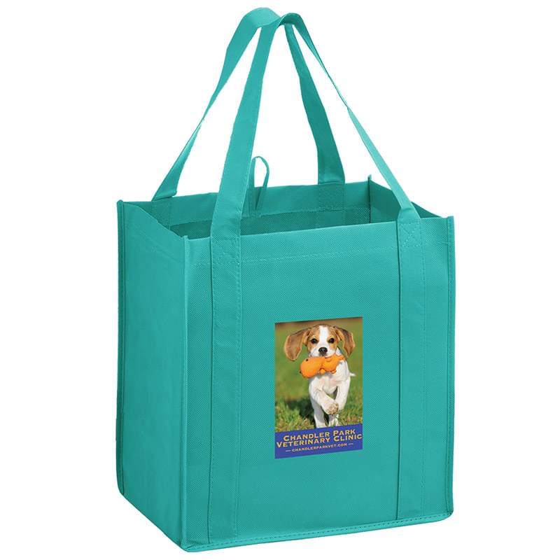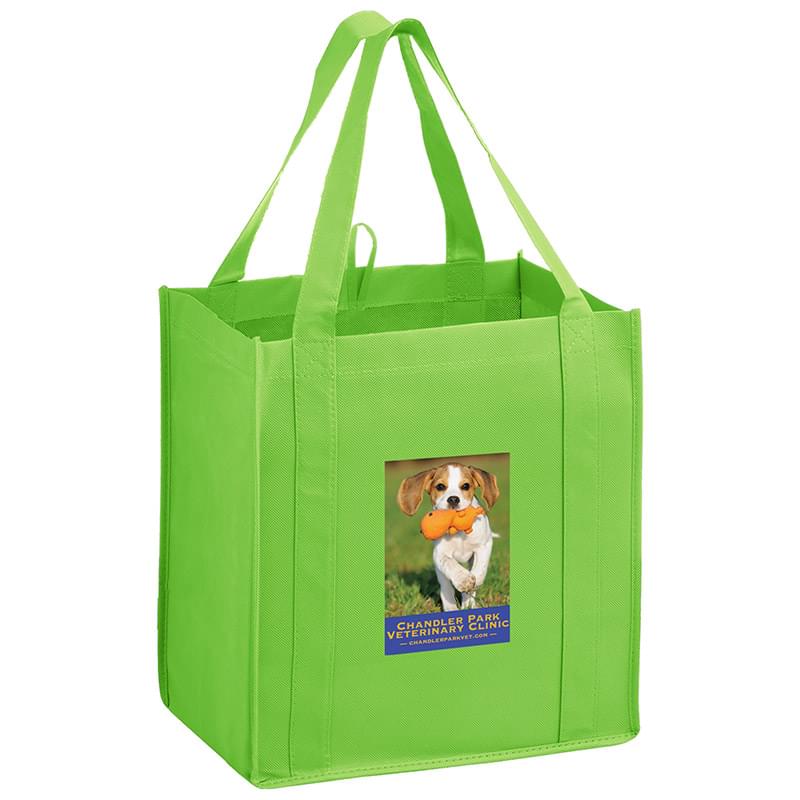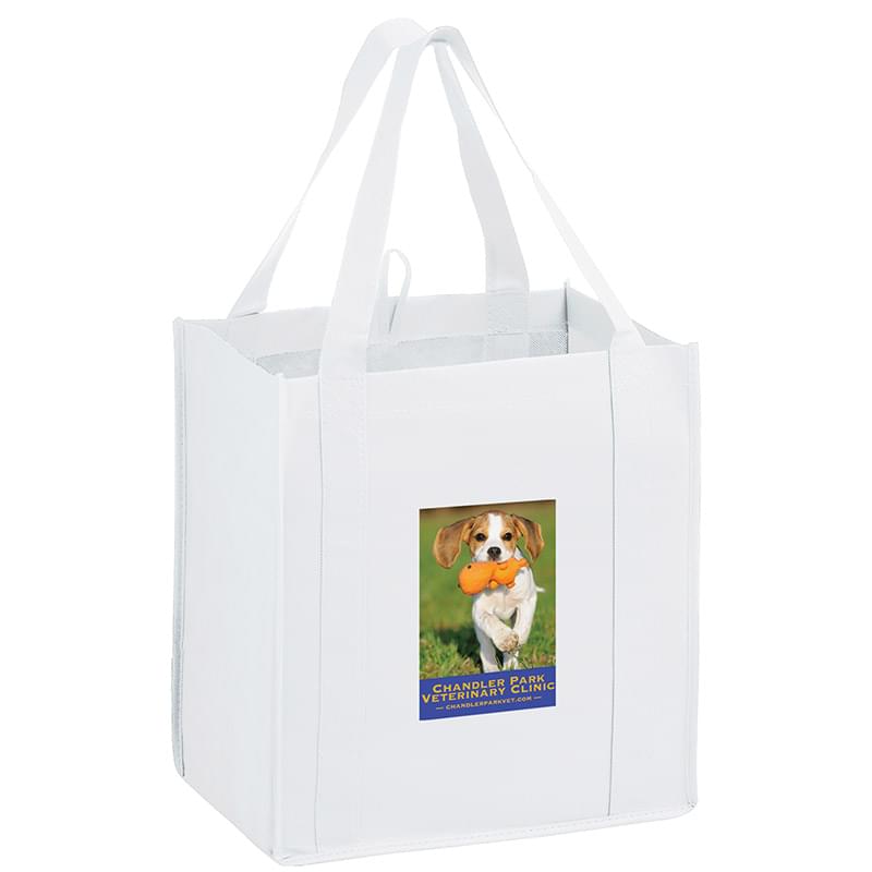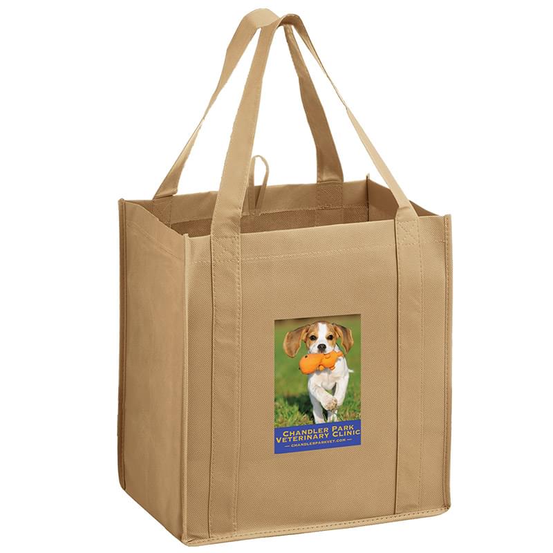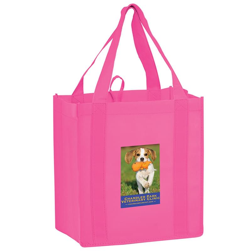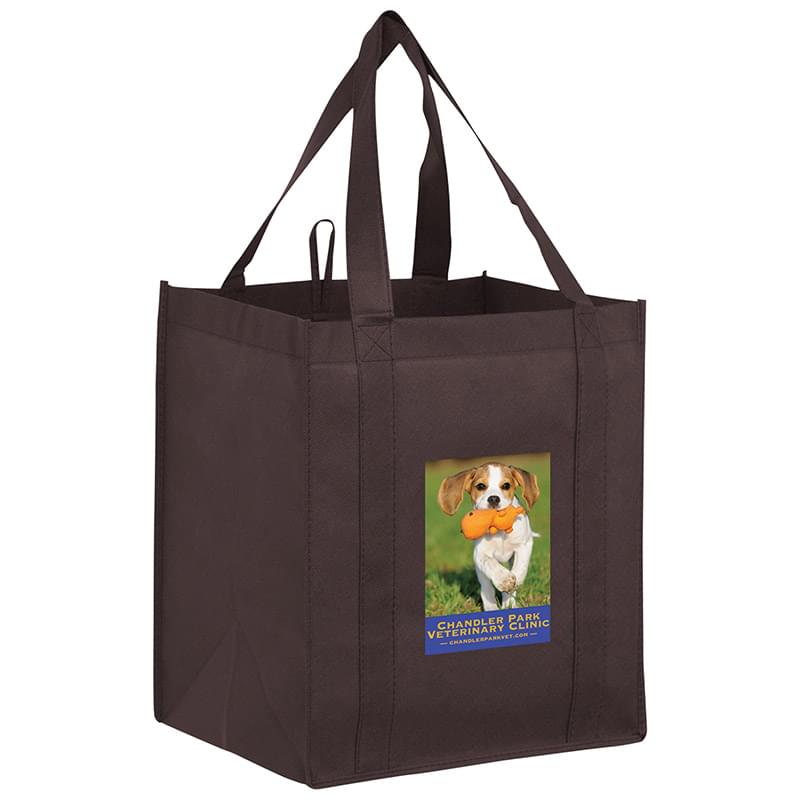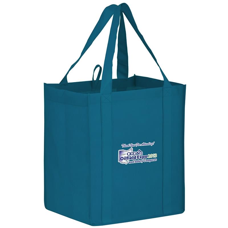 This 13" x 15" Y2K bag has 10" gussets and is made of heavy duty, 100 GSM non-woven polypropylene. Made with a hemmed opening, hanging loop, and 22" reinforced sewn handles that extend down the height of the bag. Includes a poly board insert for superior strength. Customized with our Color Evolution 4-color process, which is perfect for multi-color designs and photographs.