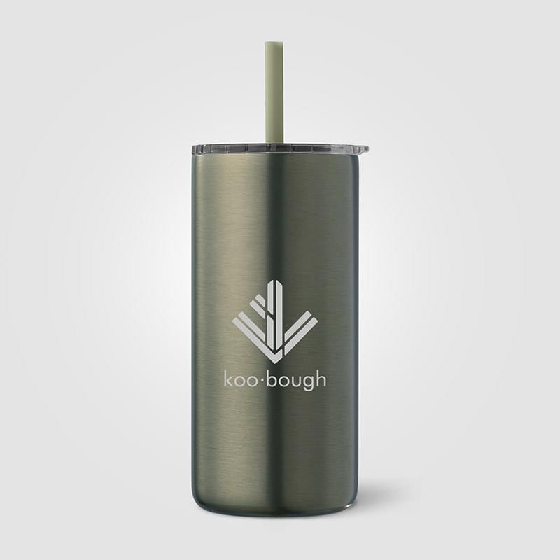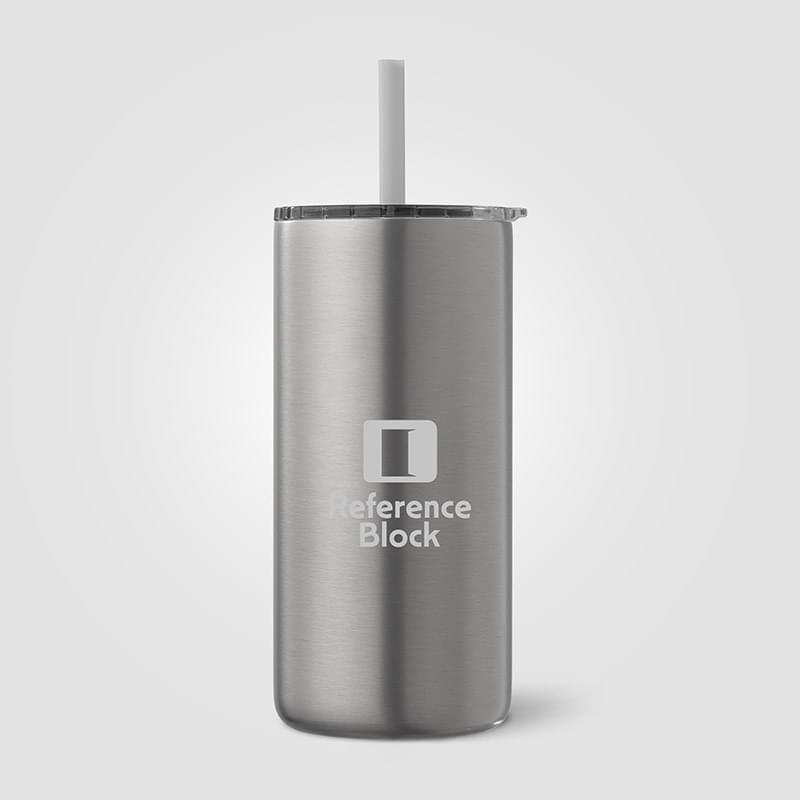Borealis Recycled Stainless Steel Straw Tumbler - 16 oz. is perfect for enjoying hot and cold drinks on the go. Featuring double-wall vacuum insulation, it keeps hot beverages warm for up to 8 hours and cold drinks chilled for up to 10 hours. Made from recycled stainless steel, the tumbler has a sleek matte metallic finish and includes a spillproof press-on lid and matching color straw for easy sipping. Ideal for daily use, it is both durable and stylish. Not suitable for dishwashers or microwaves.