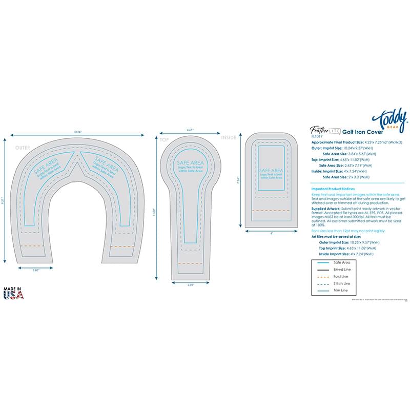 Say goodbye to unsightly scratches and bothersome dings, and say hello to a stunning, high-quality accessory that will make your favorite iron stand out on the golf course. Crafted with a luxurious, velvet-like-feeling Featherlite™ material, this iron cover provides top-notch protection and is incredibly lightweight and easy to carry. With a full-color, full-bleed imprint, it’s a standout choice for corporate giveaways, tournaments, or employee recognition. Vibrant, long-lasting graphics ensure your brand stays front and center, round after round.