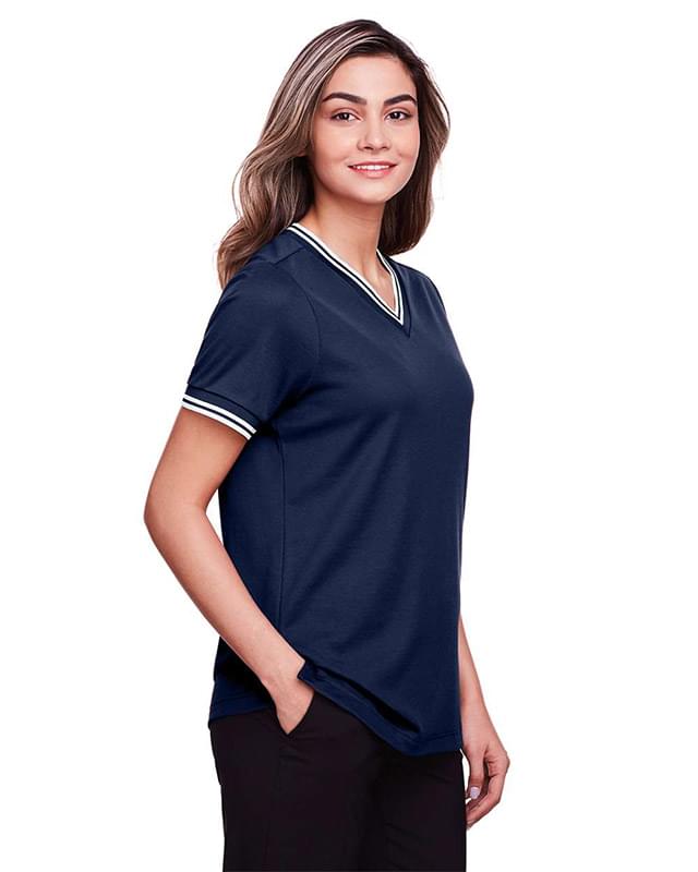 Women's CrownLux Performance® Plaited Tipped V-Neck Shirt