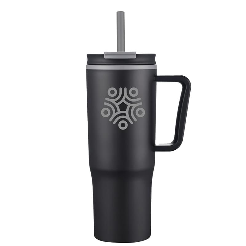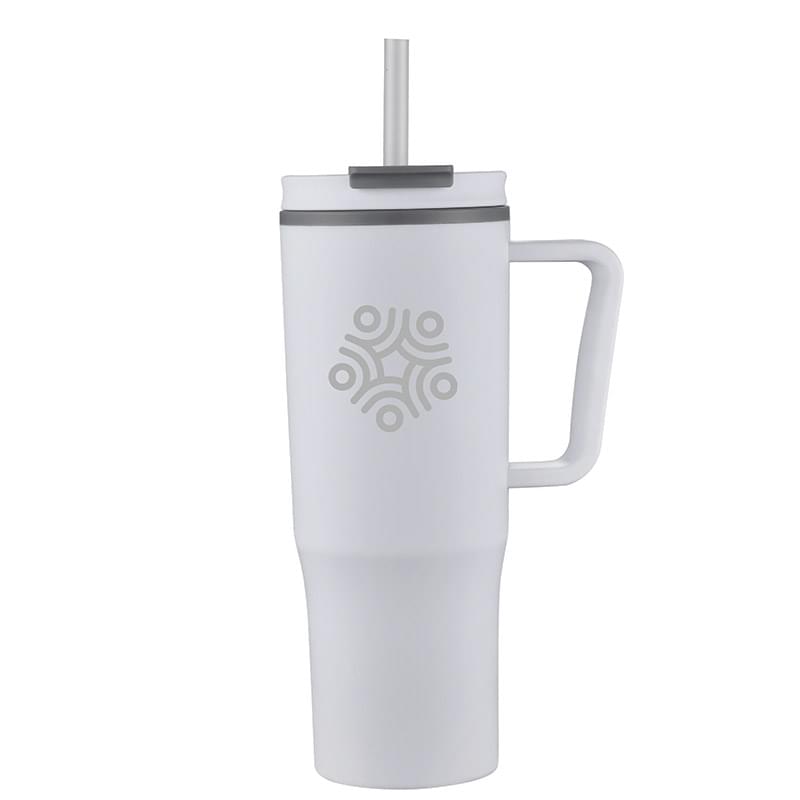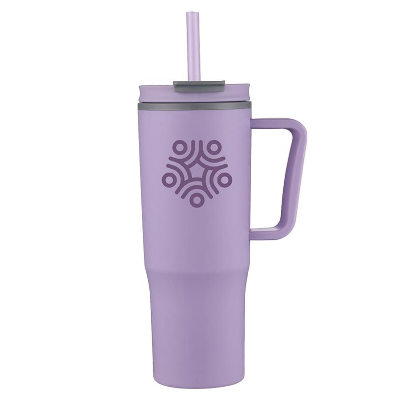 You've found a convenient tumbler that is the perfect size to quench thirst. This 30 oz. travel mug features a solid ergonomic handle, splash-proof straw opening, a lid that can be adjusted for right or left handed use and a PP liner to keep contents hot or cold. Best of all, this tumbler is budget friendly for any promotion, trade show or event. Hand wash recommended.